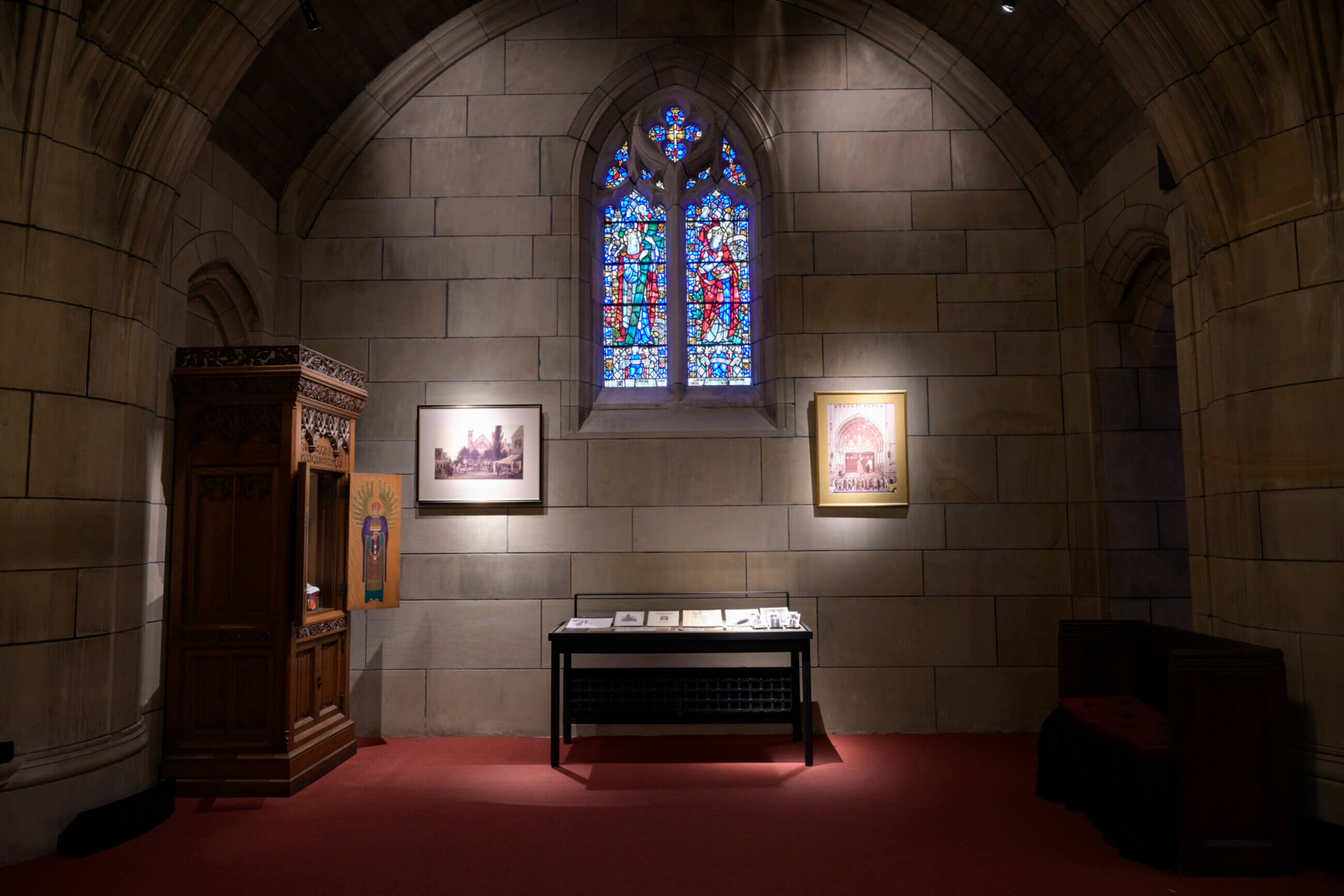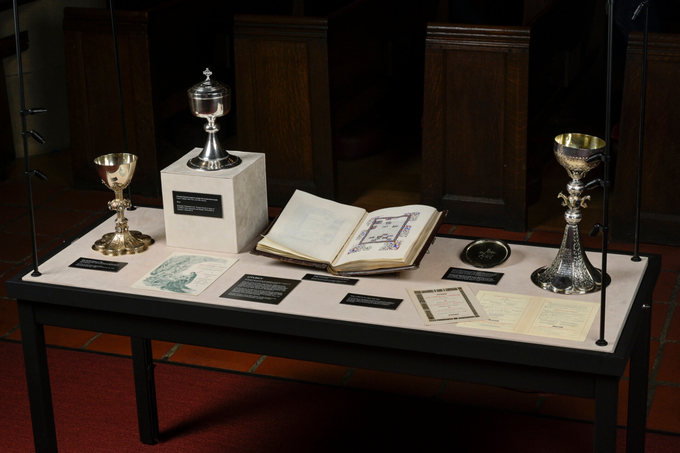 The St. Thomas Bicentennial Exhibit is a curated display of artifacts and memorabilia, commemorating the Parish’s 200-year journey as a testament to the rich architecture, art, and documents that have shaped the church’s legacy. The Lighting Practice skillfully illuminated the architectural elements, artwork, and items on display in the exhibition. Upgraded track lighting offers flexibility, allowing for dynamic adjustments tailored to the exhibition’s evolving needs. Columns are uplit, distinguishing the exhibit area as a sanctum of unique ambiance within the church’s sacred space. Blending existing and newly built casework, the team integrated adjustable fixtures that offer controlled beams, versatile zooming capabilities, and adaptable mounting options. The result is an immersive journey through history, breathing new life into cherished relics and inviting visitors to embark on an exploration of St. Thomas Parish’s rich heritage.